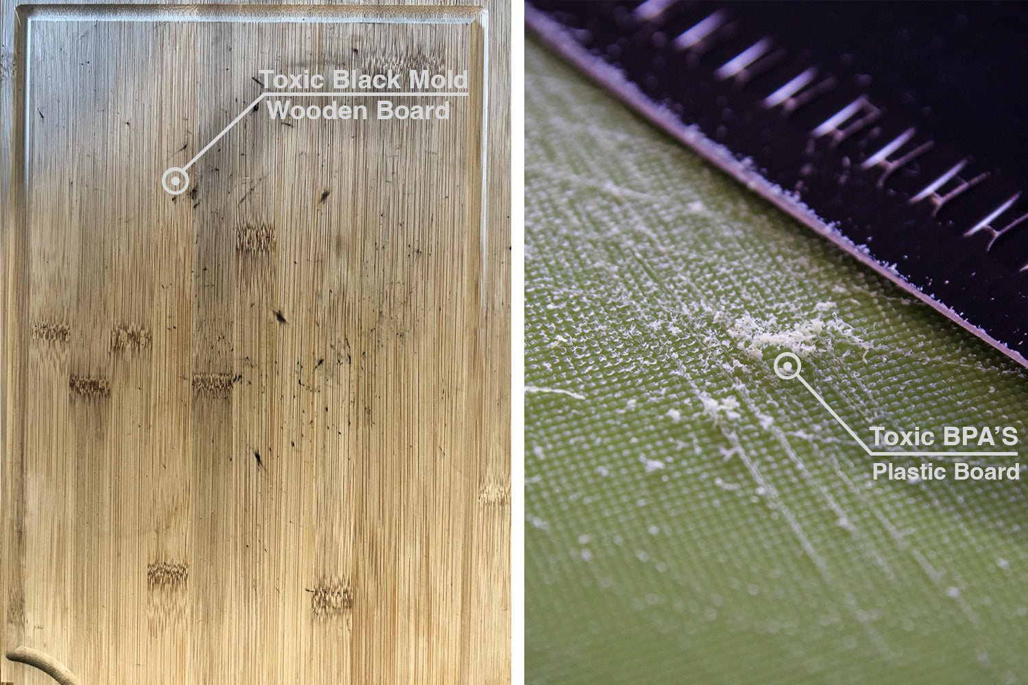 Everyday, your cutting board comes into contact with most things you eat. Imagine the dangers lurking on an old wooden board soaked with invisible mold that slowly makes you ill, or tiny microscopic plastic shavings mixing into your food from a worn-out board that eventually end up in your bloodstream & disrupts your hormones.